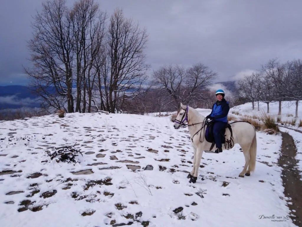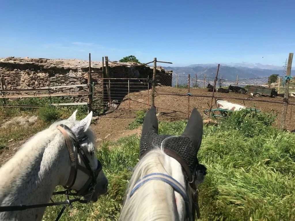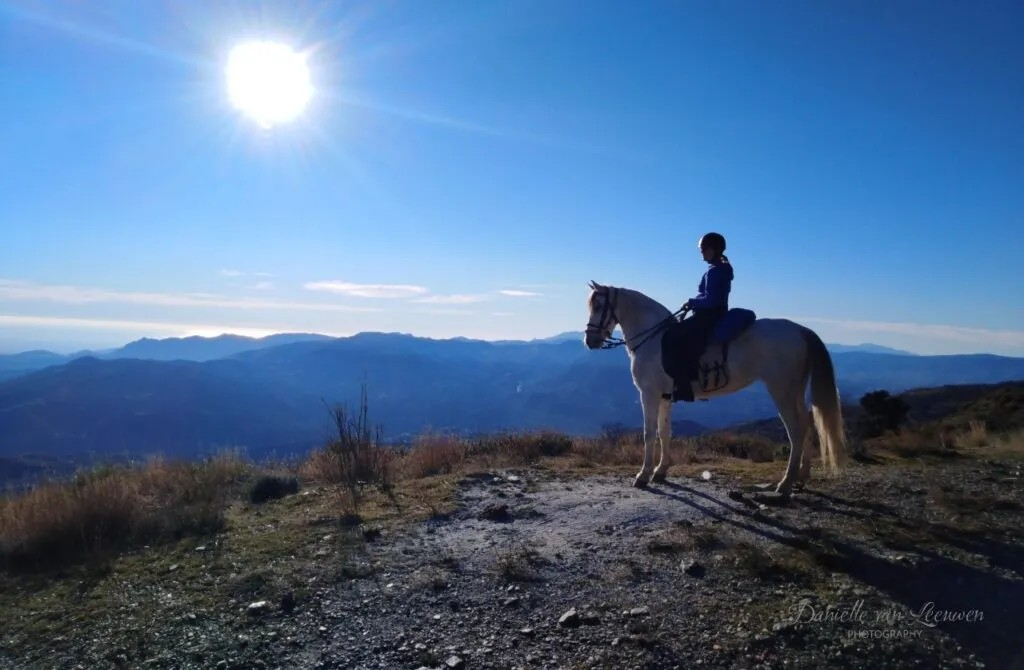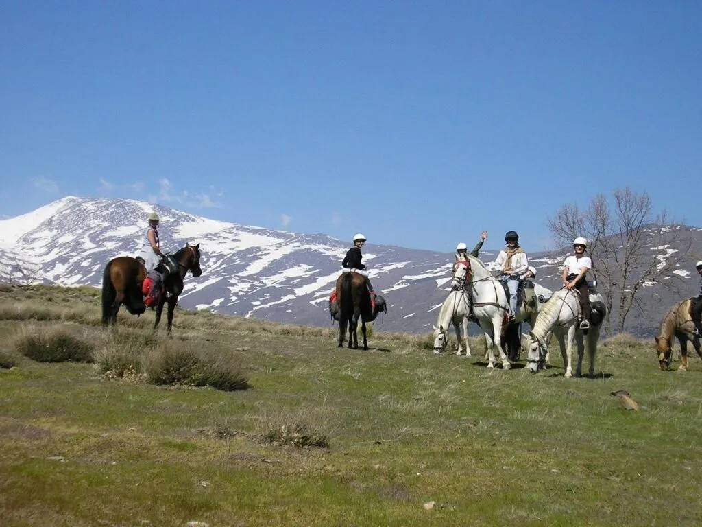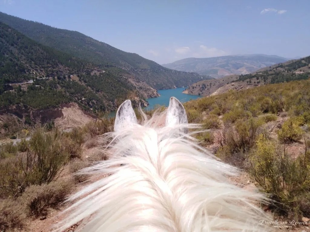 The horses that are suited for it can eventually become part of the team that creates memorable experiences for tourists on trekking tours. This means they explore the rugged landscape of the Spanish mountains, crush wild herbs under their hooves, and eat sweet figs from the trees as they pass by. The horses learn so much on these tours and eventually become comfortable around all kinds of people. They occasionally encounter traffic and other tourists, such as mountain bikers, in this mountain playground. They experience water, like the acequias, and wildlife, such as birds of prey and the wild, horned ibex goats.